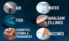 Có ba loại thủy ngân có thể gây hại: Thủy ngân nguyên tố (có trong nhiệt kế thủy tinh, công tắc điện, bóng đèn huỳnh quang và chất trám răng); Thủy ngân vô cơ (có trong pin, một số loại chất khử trùng và trong phòng thí nghiệm hóa học); và thủy ngân hữu cơ (có trong khói than, cá ăn thủy ngân và các chất khử trùng cũ).