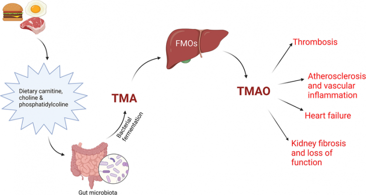 Một nghiên cứu cho thấy, nồng độ TMAO cao có liên quan đến cục máu đông, đau tim và đột quỵ ở hơn 4.000 người. Tương tự, nồng độ cao của hợp chất này có liên quan đến tỷ lệ tử vong gia tăng ở 720 bệnh nhân suy tim.